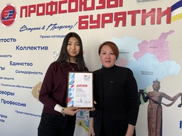 9 февраля председатель Профсоюзов Бурятии Екатерина Абашеева вручила диплом Аюне Цыдыповой за 3 место во Всероссийском профсоюзном конкурсе детского рисунка, посвященном 80-летию Великой Победы.