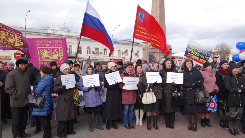Участники профсоюзного митинга солидарности, проводимого в рамках Всемирного дня действий профсоюзов «За достойный труд!», единодушно отметили, что российское государство и российское общество переживают трудные времена. На фоне резкой девальвации рубля, роста инфляции, превысившей все прогнозные значения, роста цен на услуги и товары, в т. ч. товары первой необходимости сокращаются реальные заработная плата и доходы населения.