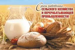 Сердечно поздравляю Вас с профессиональным праздником – Днем работника сельского хозяйства и перерабатывающей промышленности! Примите слова благодарности за созидательный труд и творческий поиск, любовь и преданность избранному делу. Желаю крепкого здоровья, неиссякаемой энергии и бодрости духа, социального мира и уверенности в завтрашнем дне, благополучия и плодотворной работы.