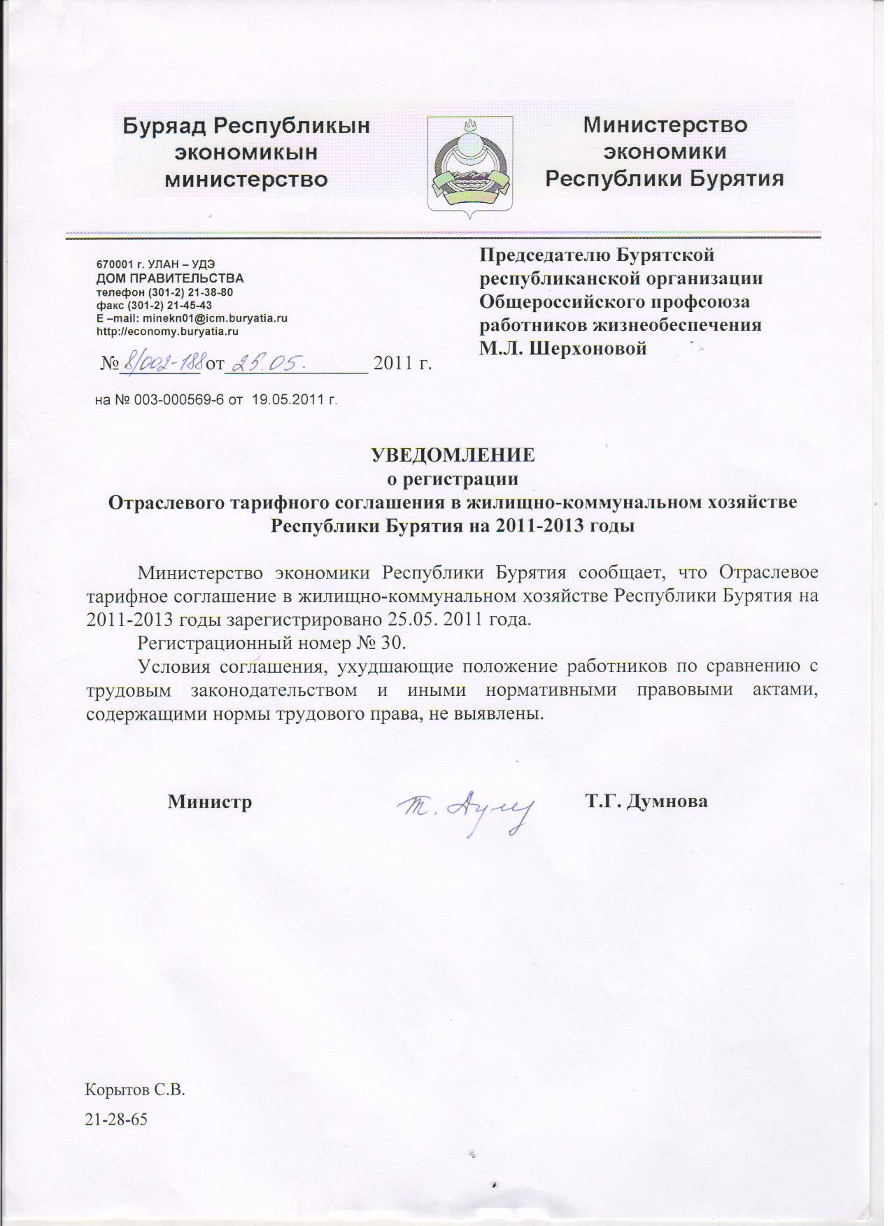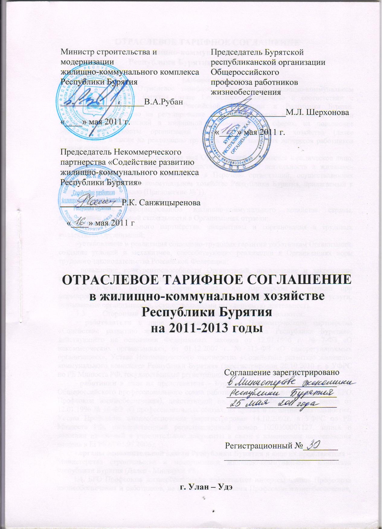 ОТРАСЛЕВОЕ ТАРИФНОЕ СОГЛАШЕНИЕ в жилищно-коммунальном хозяйстве Республики Бурятия на 2011-2013 годы[258kb]