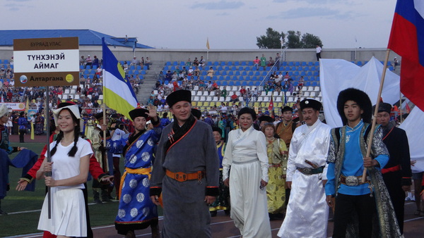 Началось открытие с поднятия флага и гимна Бурятии. Мы все знаем, что флаг «Алтарганы» считается не просто символом единства и счастья, а также признан поднять дух народов. Почетную миссию поднятия международного флага предоставили народному артисту России и Бурятии Вячеславу Бальжинимаеву, заслуженному мастеру спорта России Борису Будаеву и обладательнице звания «Мисс монгольских народов-2016» Арюне Бубеевой.