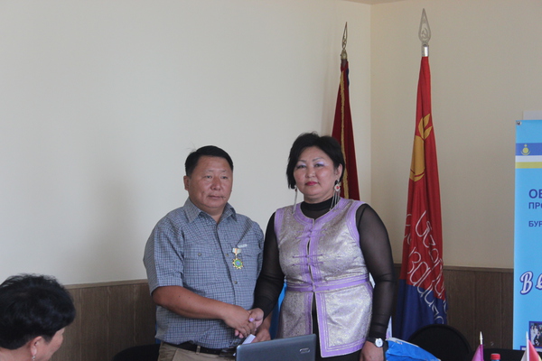 По окончании встречи руководитель делегации Ж. Саранцэцэг, председатель профсоюза Селенгинского аймака, вручила награды за сотрудничество и развитие профсоюзного движения заместителю председателя ООП РБ Елене Юдаевой и генеральному директору - главному врачу СКУП РБ «Байкалкурорт» Татьяне Сыреновой, а также активистам своего профсоюза.
