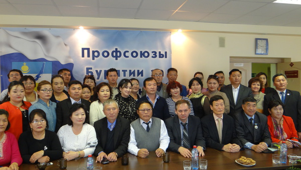 Далее по программе визита во второй половине дня прошла рабочая встреча в штаб-квартире Объединения организаций профсоюзов РБ на улице Коммунистическая, 49. Здесь в конференц-зале Союза ООП РБ состоялся международный «круглый стол». Участниками мероприятия стали представители Конфедерации профсоюзов Монголии, Союза «Объединения организаций профсоюзов Республики Бурятия», руководители отраслевых организаций профсоюзов РБ. Модератором форума стала заместитель Председателя ООП РБ Елена Андреевна Юдаева. Круглый стол был посвящен теме «Стратегия российских профсоюзов в современных условиях социально - экономического развития». Обширная программа круглого стола включала обсуждение актуальных проблем социально - трудовых отношений, охраны труда, правовой работы, социального партнерства, профсоюзной учебы, молодежной работы. Состоялся заинтересованный обмен мнениями по мотивации профсоюзного членства, по вопросам оплаты труда наемных работников. По большому счету все проблемы монгольских профсоюзов похожи на проблемы российских коллег. Это и размер зарплаты, и своевременность ее выплаты, и падение численности членов профсоюзов, и несоблюдение трудового законодательства на предприятиях и многое другое.