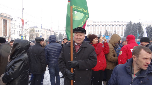 Председатель Объединения организаций профсоюзов Республики Бурятия Дмитрий Владимирович Колмаков призвал митингующих сплотиться перед лицом Запада.