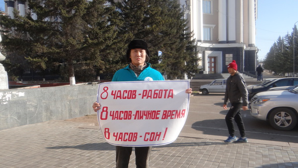 Акция. Молодежный Совет профсоюзов Бурятии провел серию одиночных пикетов в центре города Улан-Удэ