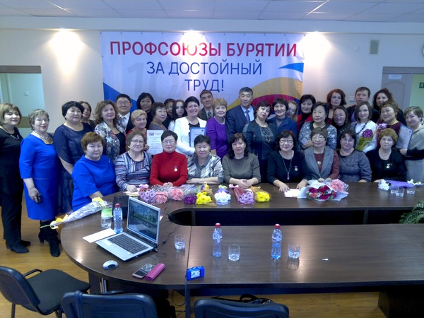 Далее состоялось торжественное собрание, посвященное знаменательной дате в истории профсоюзов Бурятии. Прозвучали приветствия руководителей профсоюзов, руководителей республиканских и муниципальных учреждений культуры, членов Республиканского комитета профсоюза работников культуры, ветеранов профсоюзного движения.