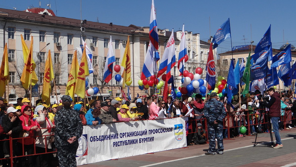 В городе Улан-Удэ 1 мая 2018 года на площади Советов в 11 часов состоялась первомайская акция профсоюзов Бурятии, посвященная празднику Весны и Труда под общим девизом: «За достойный труд, за справедливую социальную политику!».