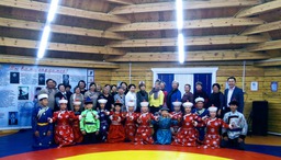 Ветеранов профсоюзного движения приветствовало также и юное поколение участников художественных коллективов Жаргалантуйской школы и вместе с гостями, в заключение своего приветствия, исполнили зажигательный ехор, который придал небывалый колорит этой памятной встрече, несмотря на дождь, снег и сильный ветер за стенами борцовского шатра, где чествовали профсоюзных активистов.