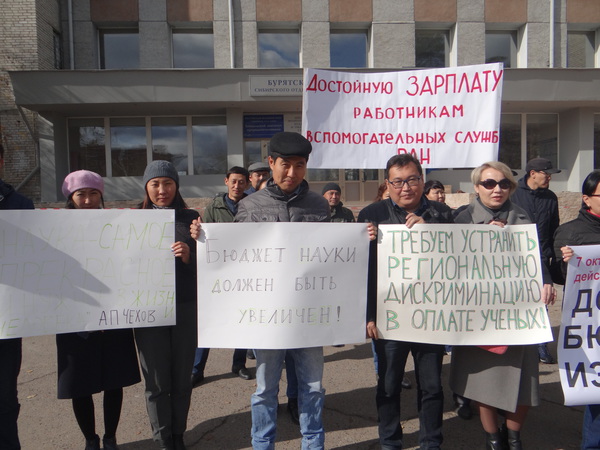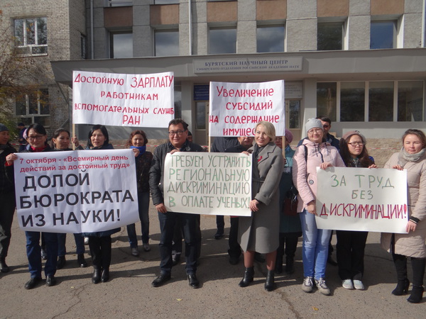 7 октября 2019 во «Всемирный день действий за достойный труд» Объединенная профсоюзная организация Бурятского научного центра СО РАН Профсоюза работников Российской академии наук провела пикет.