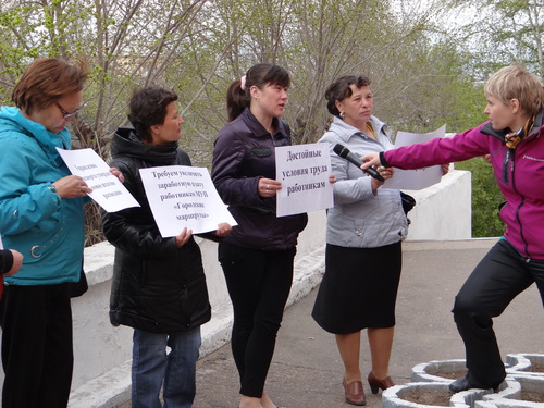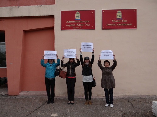 Сегодня Молодежный совет ООП вместе с профкомом МУП "Городские маршруты" провели пикет у здания администрации города Улан-Удэ. Участники пикета выдвинули требования в защиту коллектива МУП "Городские маршруты". Основным требованием было соблюдение коллективного договора на предприятии. Причиной протеста стало несогласование управлением повышения заработной платы сотрудников муниципального предприятия. Новый коллективный договор, увеличивающий ставку почти на одну тысячу рублей должен был вступить в силу в апреле 2013 года. В управлении отмечают, что финансирование повышения может привести к банкротству организации. Однако средства выделяет сама компания, а от городских властей нужно только согласование. Более того, за последнее время организация увеличила прибыль на 20 процентов.