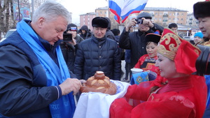 - Мы приехали сюда, для того чтобы вместе еще раз вспомнить все те большие праздники, которые подарил нам 2015 год. И, конечно, самый главный праздник - 70-летие Великой Победы. Эта победа завоевана нашими отцами и дедами, на эту победу положено 27 миллионов жизней. Сегодня фашизм в ряде стран вновь поднимает свою голову, эту голову надо оторвать и нам это по плечу! И какие-то мелкие политические мошенники пытаются все это заболтать и изменить. Не дадим и не допустим этого! Мы с честью пронесем это знамя до Магадана. И 9 мая, в День 70-летия Победы советского народа в Великой Отечественной войне, оно будет гордо развеваться на Красной площади в Москве.