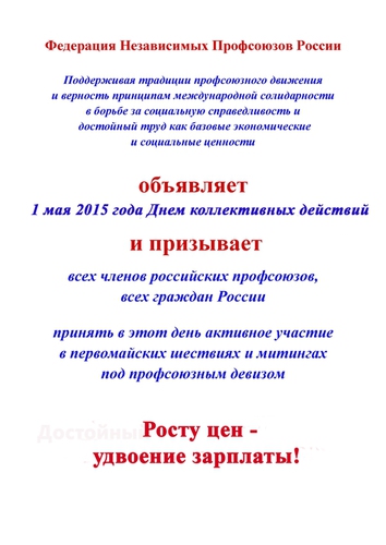 1 МАЯ 2015 ГОДА - МИТИНГ ПРОФСОЮЗОВ БУРЯТИИ. УЛАН-УДЭ, ПЛОЩАДЬ СОВЕТОВ, 11.00. ВСЕ НА МИТИНГ!