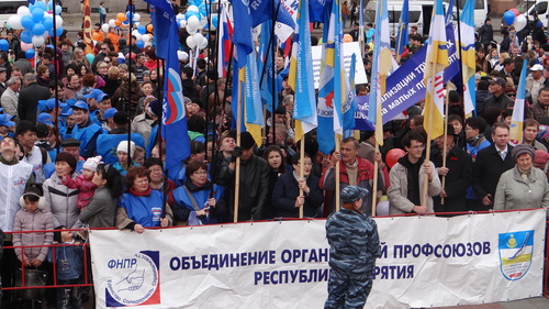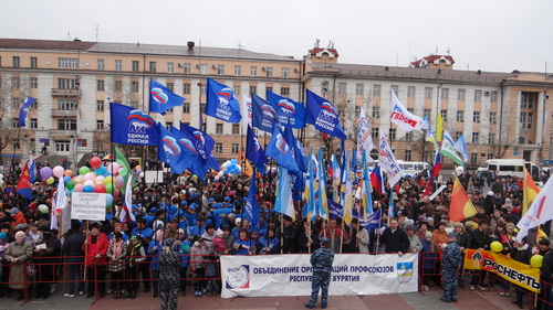 Уже по традиции организаторами массового мероприятия выступили Объединение организаций профсоюзов Республики Бурятия и Администрация города Улан - Удэ. На площади Советов собрались представители профорганизаций промышленных предприятий и бюджетных учреждений, студенчества, органов власти, различных общественных объединений.