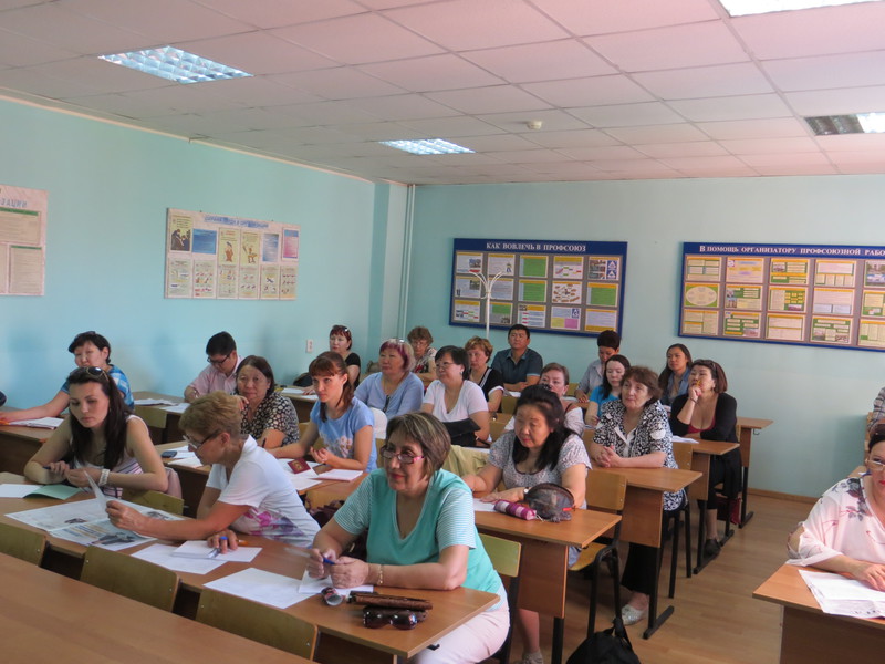 25 – 27 июня 2015 г. состоялось очередное обучение профсоюзного актива в соответствии с планом мероприятий по реализации Отраслевого соглашения между Министерством культуры Республики Бурятия и Бурятской республиканской организацией профсоюза работников культуры. Участниками трехдневного выездного семинара на курорте Горячинск стали казначеи профсоюзных комитетов и председатели ревизионных комиссий первичных профсоюзных организаций культуры и искусств, а также ряд председателей профкомов. В работе семинара приняли участие заместитель Председателя Федерации независимых профсоюзов России Давид Михайлович Кришталь, представитель ФНПР в Сибирском Федеральном округе Александр Юрьевич Гуляко и новый председатель Объединения организаций профсоюзов Республики Бурятия Дмитрий Владимирович Колмаков. Выступая на открытии семинара Д.М. Кришталь рассказал об итогах IX съезда ФНПР, задачах, которые стоят перед профсоюзами в текущей социально-экономической ситуации, уделив особое внимание вопросам пенсионного обеспечения и специальной оценки условий труда. В программе были предусмотрены лекции в Учебно-методическом центре ООП РБ : - по правовым основам финансовой деятельности профсоюзов в свете действующего законодательства РФ; - о средствах профорганизации, принципах их формирования и расходования. Планирование сметы доходов и расходов; - об организации контроля за расходованием средств. О финансовой отчетности; - о правах и обязанностях ревизионной комиссии. Уже в Горячинске был проведен коммуникативный тренинг членом Президиума Рескома С.В.Петровой, а также освещены юристом Забродиной Н.И. вопросы по трудовому праву. Далее были запланированы выступления секретаря ФНПР А.Ю.Гуляко «Социальная политика и действия профсоюзов по ее совершенствованию» и первого заместителя министра культуры РБ Н.Н. Светозаровой «Актуальные вопросы жизнедеятельности отрасли». Однако, эти выступления решили провести в формате Круглого стола с участием председателя Рескома Л.Ч.Норбоевой, начальника отдела правовой работы и госслужбы А.А.Халматовой, консультанта отдела бюджетного планирования и целевых программ С.Н.Шараповой, председателем Координационного совета профсоюзов МО «Баргузинский район» Т.Л.Скосырской и всего профсоюзного актива, участвующего в семинаре. В итоге состоялся заинтересованный разговор, в котором были затронуты все животрепещущие проблемы, волнующие работников культуры. Участники круглого стола обсудили ход выполнения показателей "дорожной карты" в соответствии с Указом Президента РФ №597 от 7 мая 2012г. в части поэтапного повышения оплаты труда работников культуры, а так же вопросы реализации приказа Министерства образования РФ от 22.12.14. №1601 "О продолжительности рабочего времени…» в части установления единой нормы учебной нагрузки преподавателям дополнительного образования. А.Ю. Гуляко проинформировал участников семинара об основных направлениях деятельности ФНПР и профсоюзных организаций Сибирского федерального округа по защите прав работников. Представитель ФНПР в СФО сообщил о том, что Минтруд России подготовил проект федерального закона «О внесении изменений в отдельные законодательные акты» (в части установления минимальных гарантий по оплате труда работников). ФНПР не поддерживает данный 