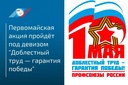 ПЕРВОМАЙСКАЯ АКЦИЯ профсоюзов в 2025 году. Девиз акции: «Доблестный труд – гарантия Победы!»